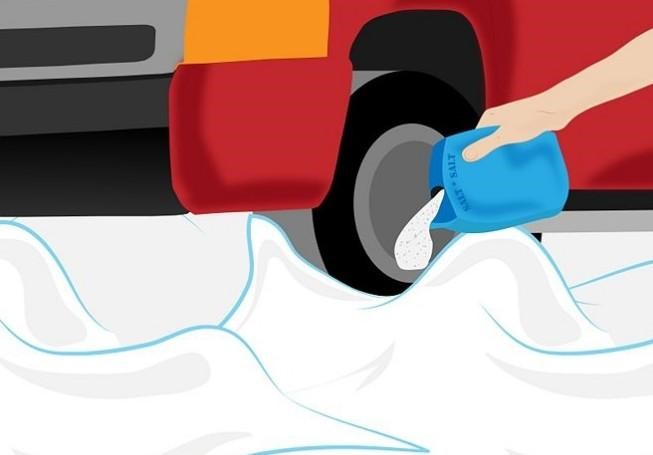 Можно воспользоваться жидкостью стеклоочистителя ветрового стекла, антифризом или солью, чтобы растопить снег и лед и улучшить сцепление, хотя это плохо с экологической точки зрения.