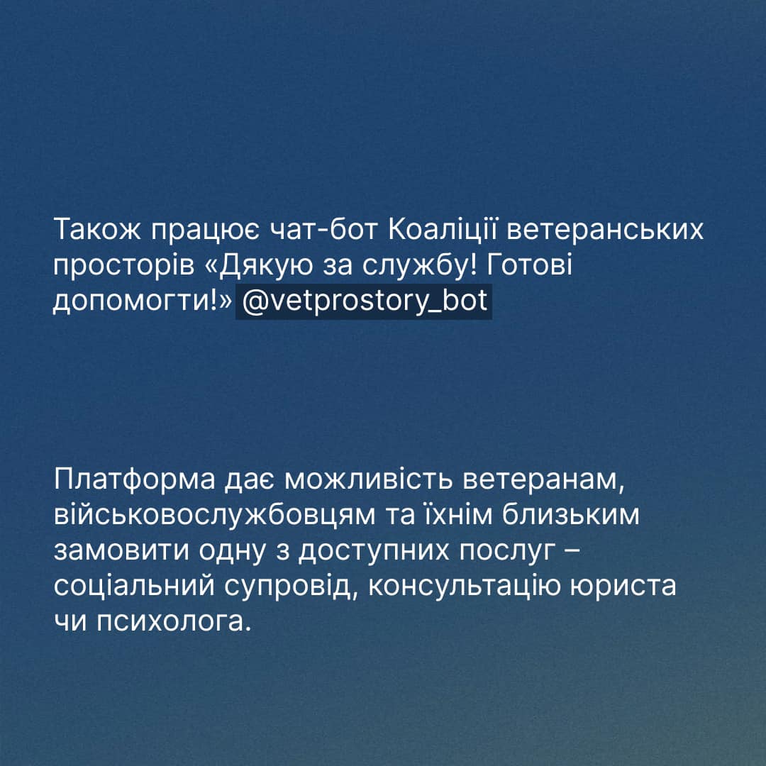 Близкие ветеранов также могут воспользоваться государственными услугами для поддержки опекунов - "Уход на дому" и "Персональный ассистент". Поставщиков соцуслуг можно найти на сайте Минсоцполитики: msp.gov.ua → Гражданам → Социальные услуги; Реестр поставщиков социальных услуг (внизу есть карта).