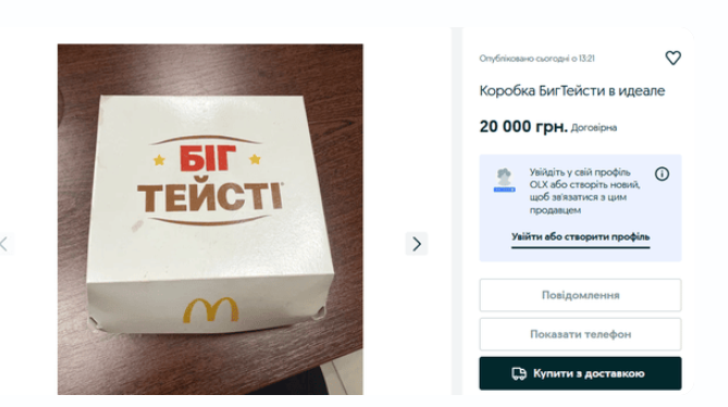 Следует заметить, что новость подхватили здешние "коммерсанты" и уже на OLX продают коробку от Биг Тейсти за крупную сумму денег.