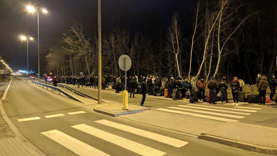 На действующих пунктах пропуска на польско-украинской границе, количество которых сократилось после того, после того, как Польша частично закрыла границу с Украиной с целью предотвратить распространения коронавируса, продолжают образовываются огромные очереди из желающих вернуться в Украину.