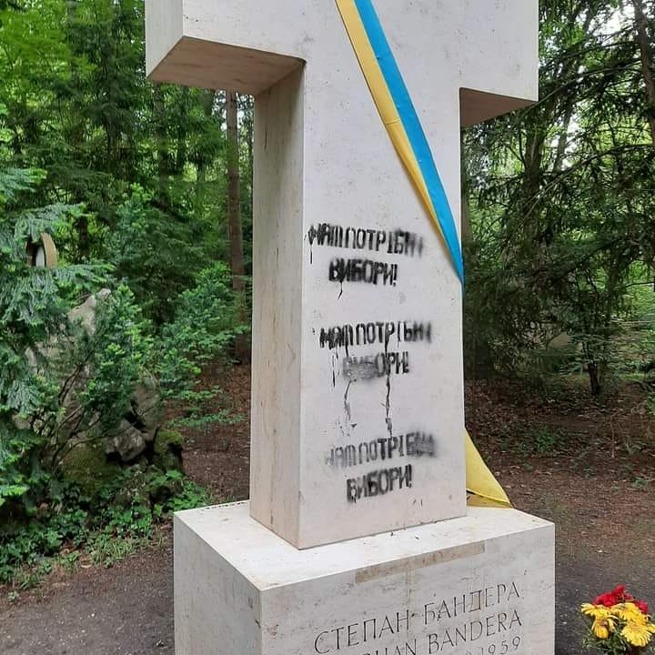 В Германии неизвестные разрисовали памятник на могиле проводника ОУН Степана Бандеры лозунгами "нам нужны выборы".