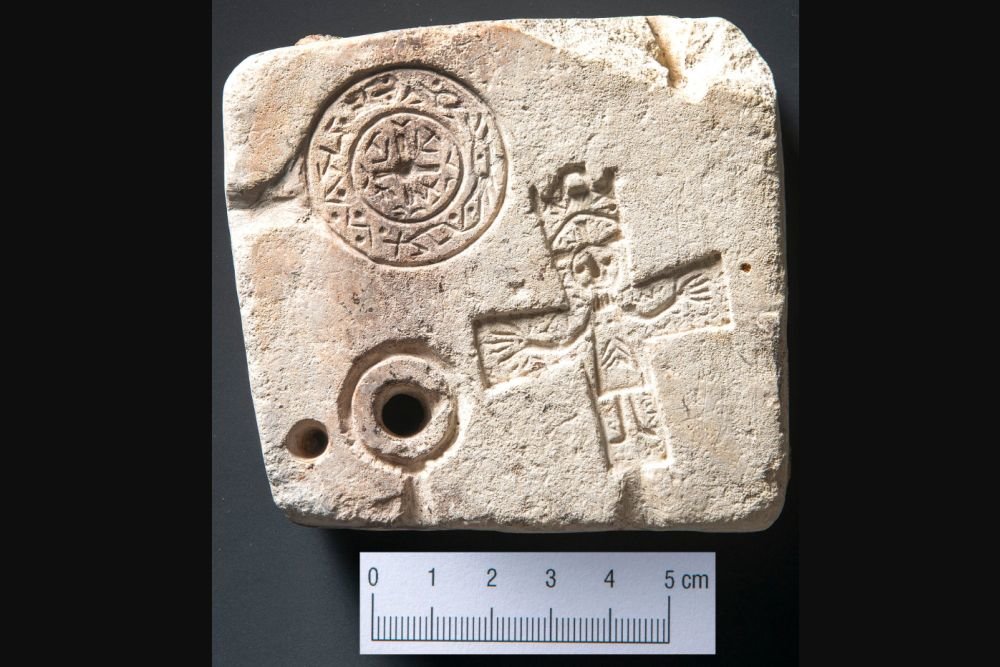 Артефакт сохранился фрагментарно. Он был почти правильной квадратной формы размером 9х8,3 сантиметра. Его толщина составляет три сантиметра. На одной из сторон имеются две матрицы христианской иконографии. Они были предназначены для изготовления распятия и круга с крестиком в центре.