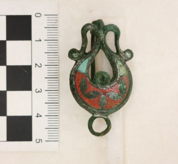 Так же археологам удалось найти англосаксонские артефакты. Одно из захоронений содержало щит, фрагменты лезвия ножа и подвесную чашу из медного сплава. Эксперты говорят, что богатство англосаксонской могилы предполагает человека с достаточно высоким статусом, такого как высокопоставленный офицер.