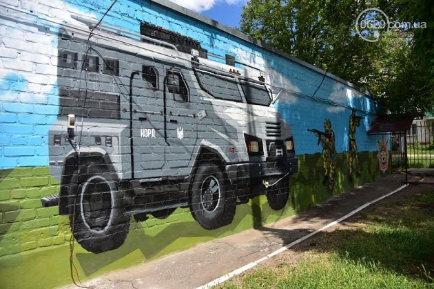 В Мариуполе стену одного из зданий, которое расположено на территории Главного управления Нацполиции в Донецкой области, украсили муралом.