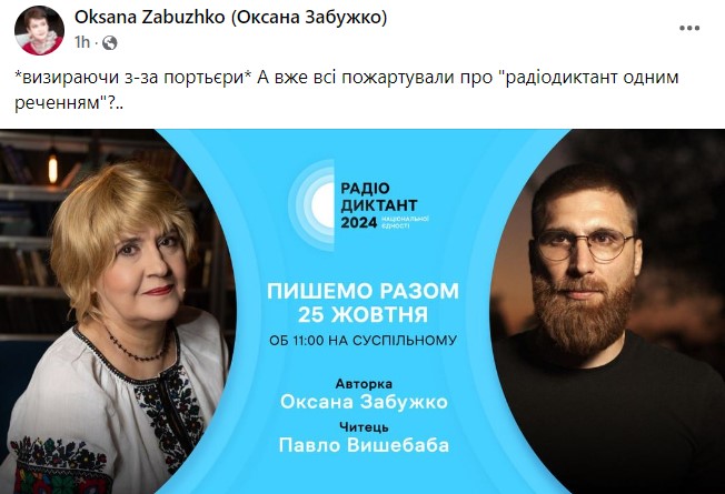 Писательница Оксана Забужко, которая стала автором текста Радиодиктанта национального единства 2024, подколола тех, кто шутит над ее авторским стилем с длинными предложениями.