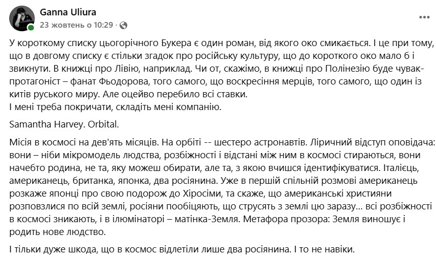 Украинцев возмутило такое решение жюри. В сети распространяют пост литературоведа и критика Анны Улюры, которая писала об этом романе еще в октябре.