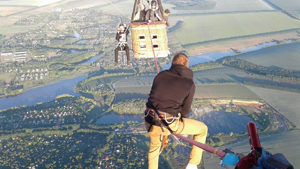 "Сегодня на рассвете зафиксирован беспрецедентный рекорд Украины. Впервые в Украине на высоте 660 метров украинский хайлайнер Станислав Панюта прошел по стропе между двумя воздушными шарами, пилотированными профессионалами высочайшего класса Сергеем Скалько и Юрием Бейдиком", - говорится в сообщении.