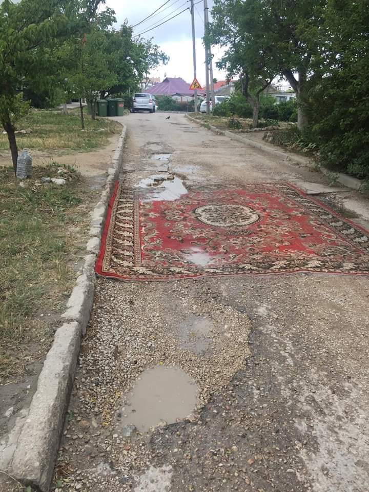 "Ковер закатали в асфальт... Это Севастополь", - говорится в подписи к фото.