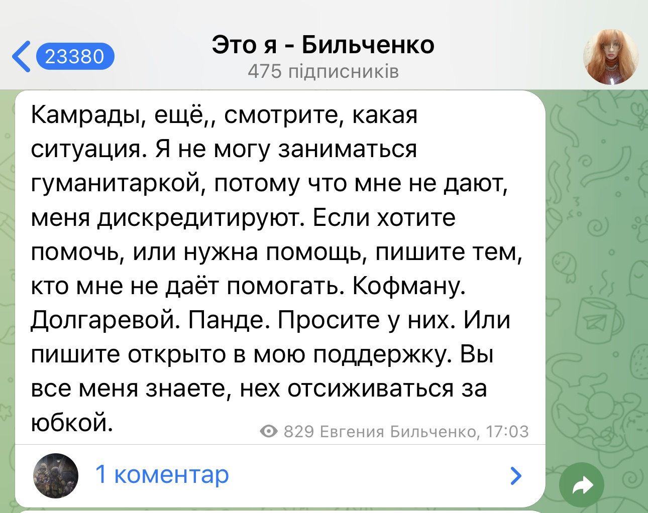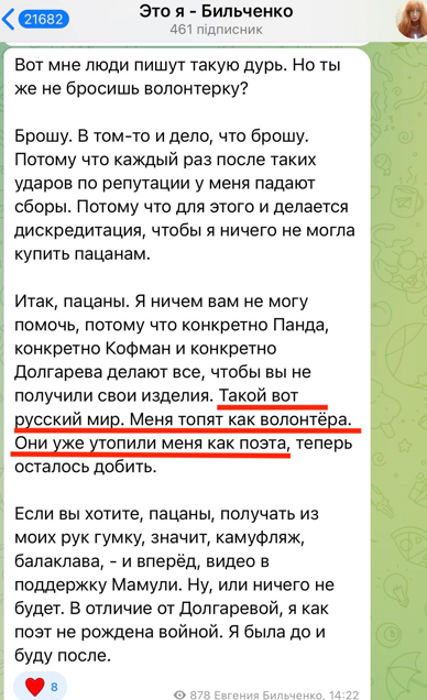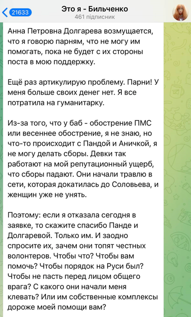 За время полномасштабной войны в России Бильченко стала волонтером, собирала деньги на помощь российской оккупационной армии, пока не произошел скандал.