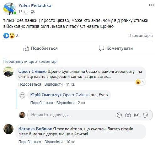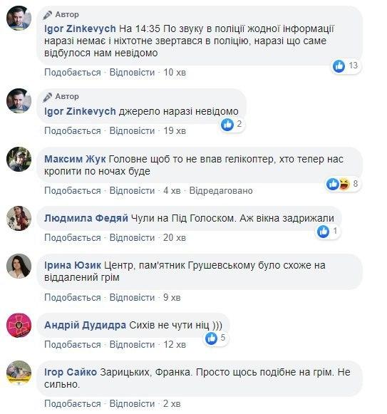 По предположению, виновником громкого хлопка, который напугал львовян, мог стать военный самолет, который пролетая над городом преодолел звуковой барьер. Депутат Игорь Зинкевич обратил внимание на военные учения, которые в это время проходят на расположенном в Львовской области полигоне.