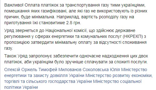 "В декабре стоимость платежек перечислили в 21 области Украины, снизив ее до 30%", - сказал Гончарук.