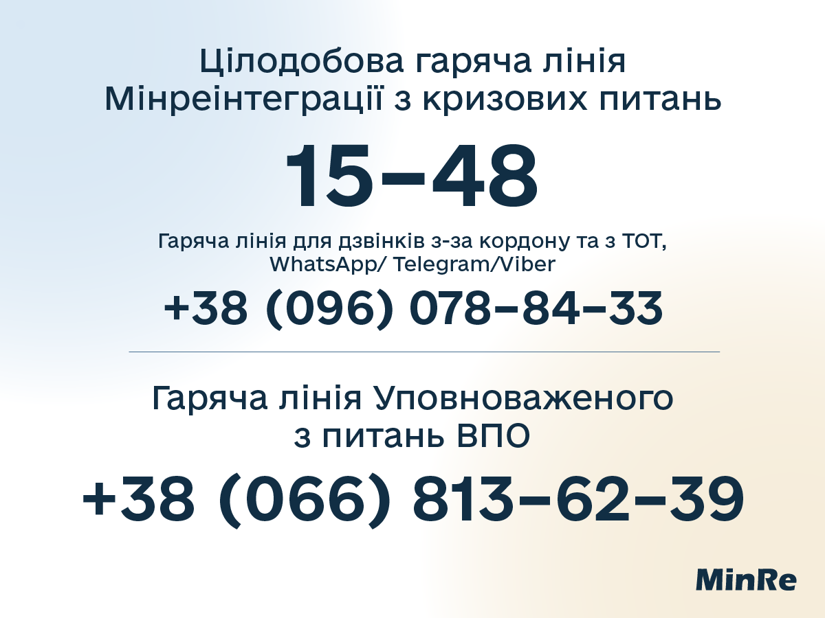 Более детальную информацию можно узнать, позвонив на номера "горячей линии" Минреинтеграции.