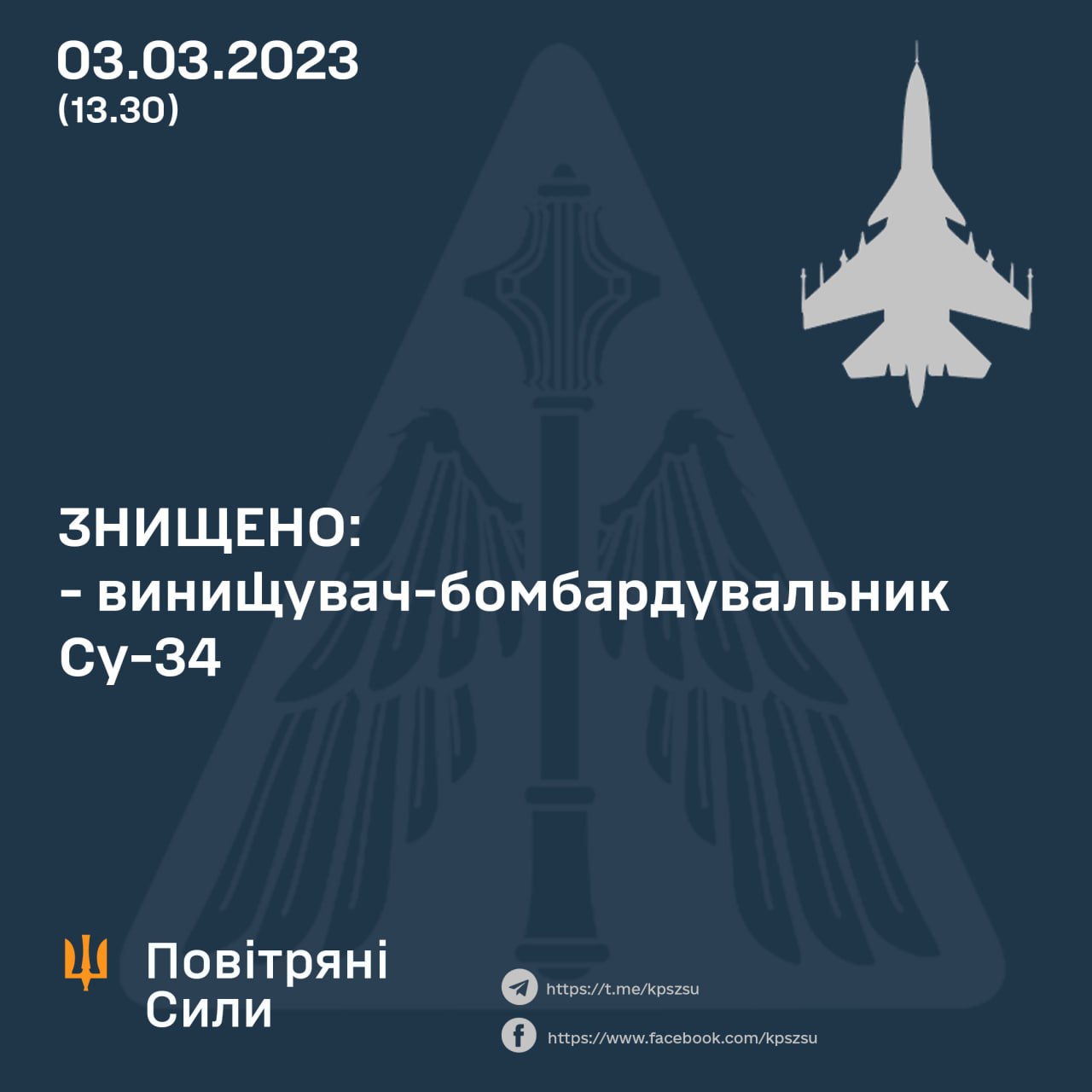 Отмечается, что российский истребитель-бомбардировщик Су-34 был сбит зенитчиками Никопольского зенитного ракетного полка воздушного командования "Восток".
