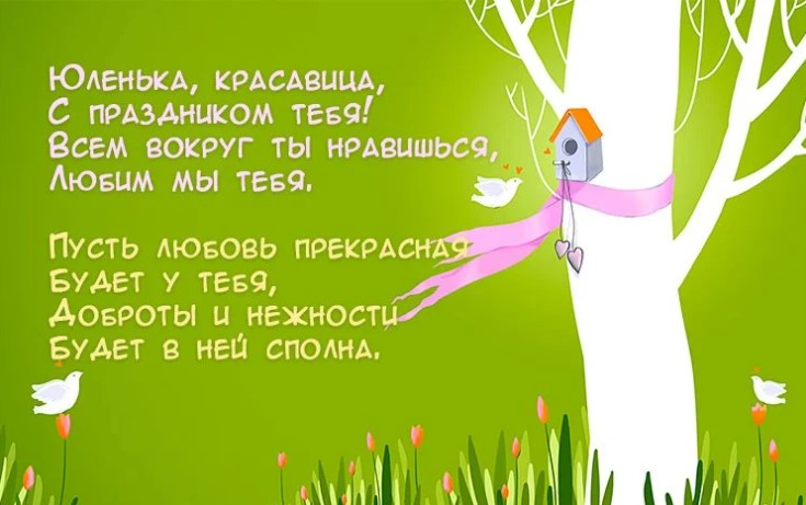 Дорогая Юленька, милая моя, поздравляю тебя и от всего сердца пожелать хочу, чтобы удача тебе улыбалась, чтобы счастье твое никуда от тебя не девалось, чтобы сердце любовью согревалось, чтобы ты всегда великолепной и чудесной оставалась.