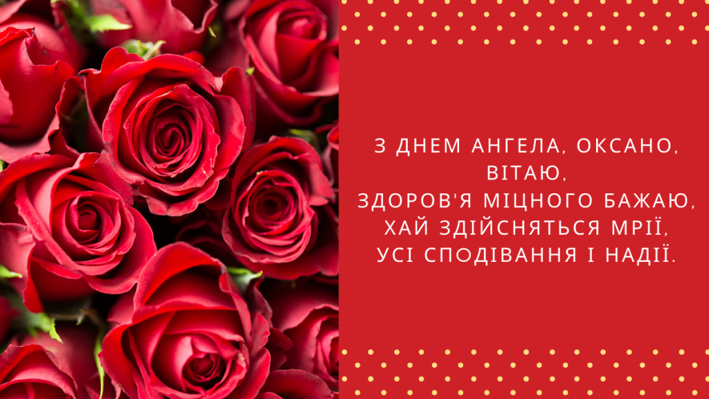 Дорогая Ксения (Оксана), поздравляю тебя с Днем ангела! Пусть твоя небесная покровительница оберегает от всего злого, дарит покой в сердце, веру в себя и свет на жизненном пути. Желаю здоровья, любви и ежедневных маленьких радостей.