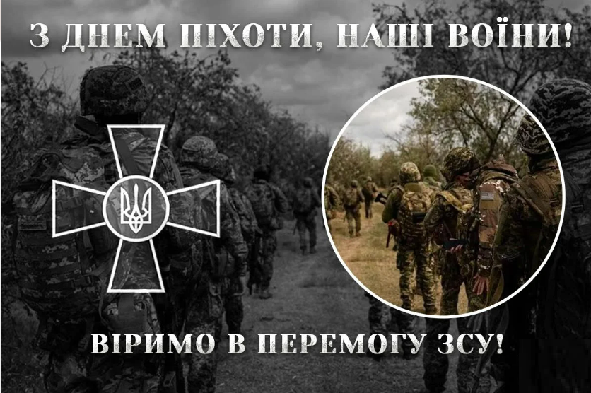 Уважаемые пехотинцы! С Днем пехоты Вооруженных сил Украины! Вы являетесь главными бойцами нашей страны, вы бережете ее мир и безопасность, возлагаем на вас большую ответственность. Желаем вам крепкого здоровья, веры в свои силы и побед во всех боевых действиях!