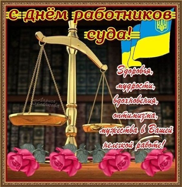 Поздравляю с Днем работников суда Украины. Желаю неизменных принципов справедливости и беспристрастия, безупречной деятельности и больших успехов, абсолютной удачи в жизни и высокой репутации, крепкого здоровья и бравых сил. Пусть правосудие всегда торжествует, пусть закон и честность правят страной.