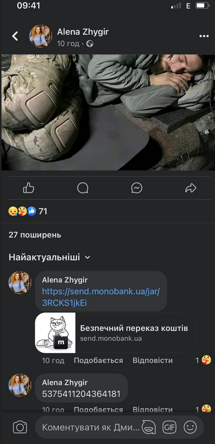 По его словам, на волне обсуждений и воспоминаний в сети вокруг фигуры украинского поэта появилось сообщение в Facebook от имени Алены Жигир о сборе средств.
