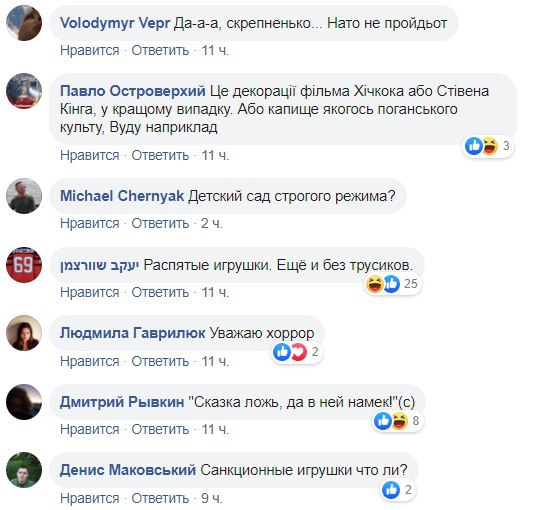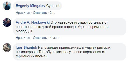 Фотографии вызвали оживленное обсуждение в сети. Пользователя оставляют сатирические и возмущеные комментарии. Поляну сказок уже сравнили с колонией строгого режима, декорациями к фильмам королей ужасов Хичкока и Стивена Кинга и полями смерти в Камбоджи. Кое-кто предположил, что игрушки, видимо, забрали у расстрелянных детей "врагов народа".