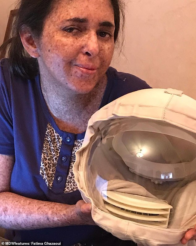 28-летняя женщина из Марокко с редким генетическим заболеванием вынуждена носить массивную маску-скафандр, потому что солнечные лучи для ее кожи очень опасны.
