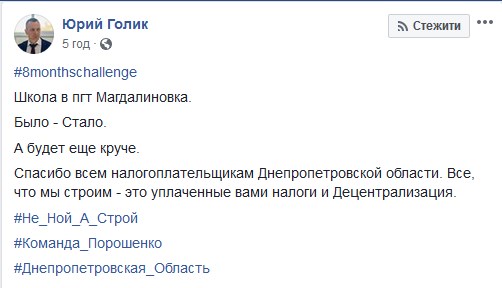 "Создать для детей Днепропетровщины современное образовательное пространство – такую задачу поставил президент Украины Петр Порошенко. По всей области Днепропетровская ОГА проводит реконструкции более 30 основных и опорных школ. В Магдалиновской школе, которой уже 40 лет, привели в порядок все учебные классы. Там учится около 700 детей. Это жители Магдалиновки и 5 соседних сел", – сказал Голик.