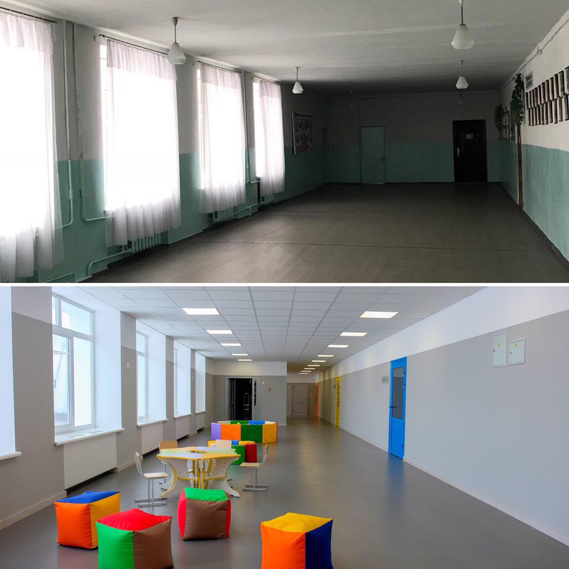 Теперь в Магдалиновской школе на перемене дети смогут проводить время в просторной игровой, где установлены удобные пуфы, а также детский сухой бассейн, наполненный шариками.