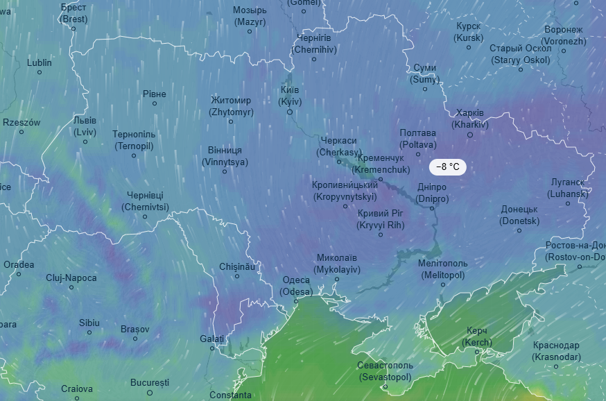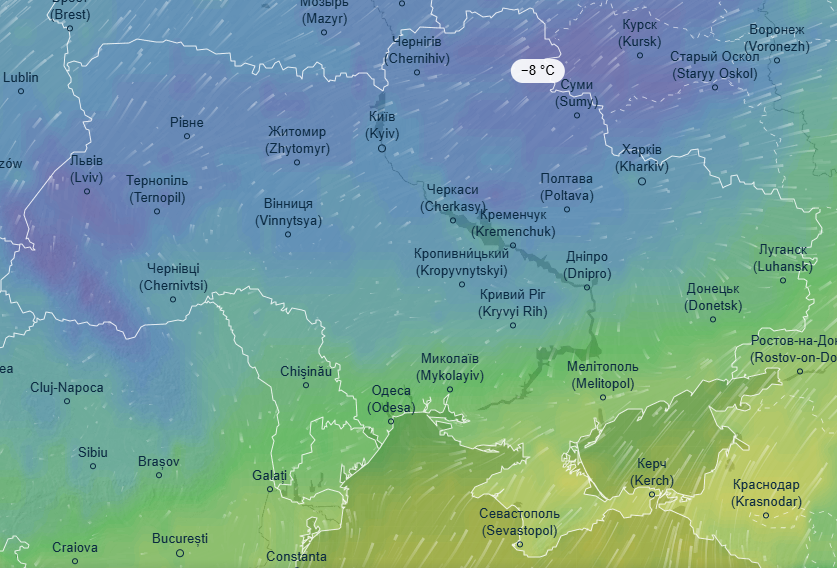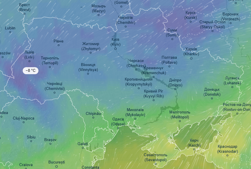Ночь на среду, 8 января, ожидается аналогичной предыдущим суткам - морозы до 8 градусов скуют западные и северные области. Холоднее всего будет на Львовщине, Тернопольщине, Прикарпатье, а также в Сумской, Кировоградской и Житомирской областях, где ожидается от 5 до 8 градусов мороза.