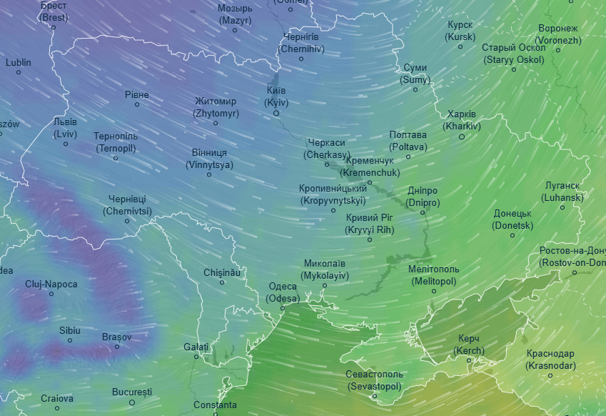 Об этом свидетельствуют данные метеорадара Ventusky.
