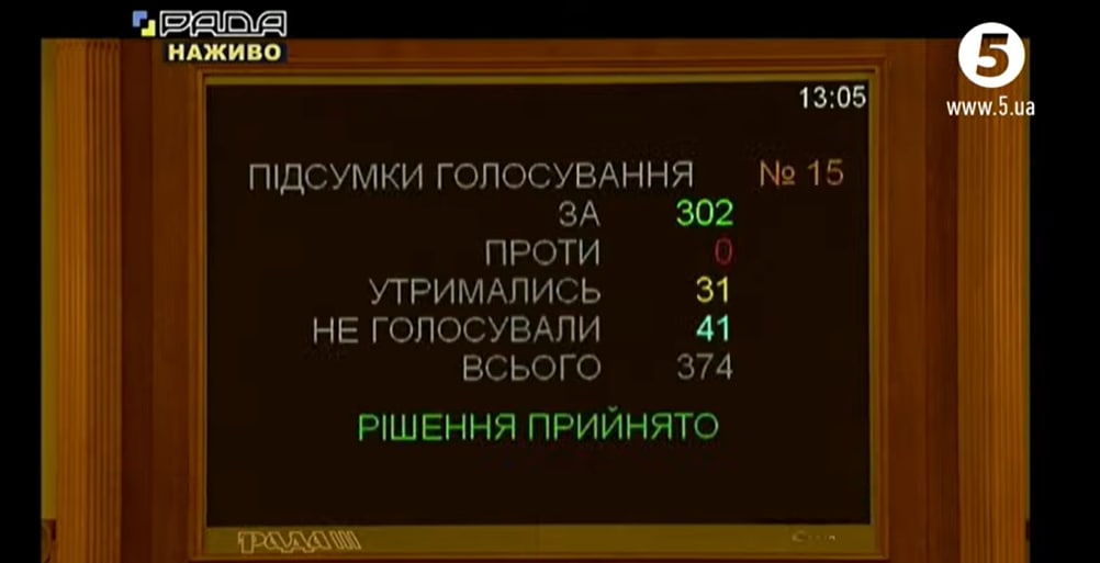 За соответствующий законопроект №4634 проголосовали 302 нардепа.