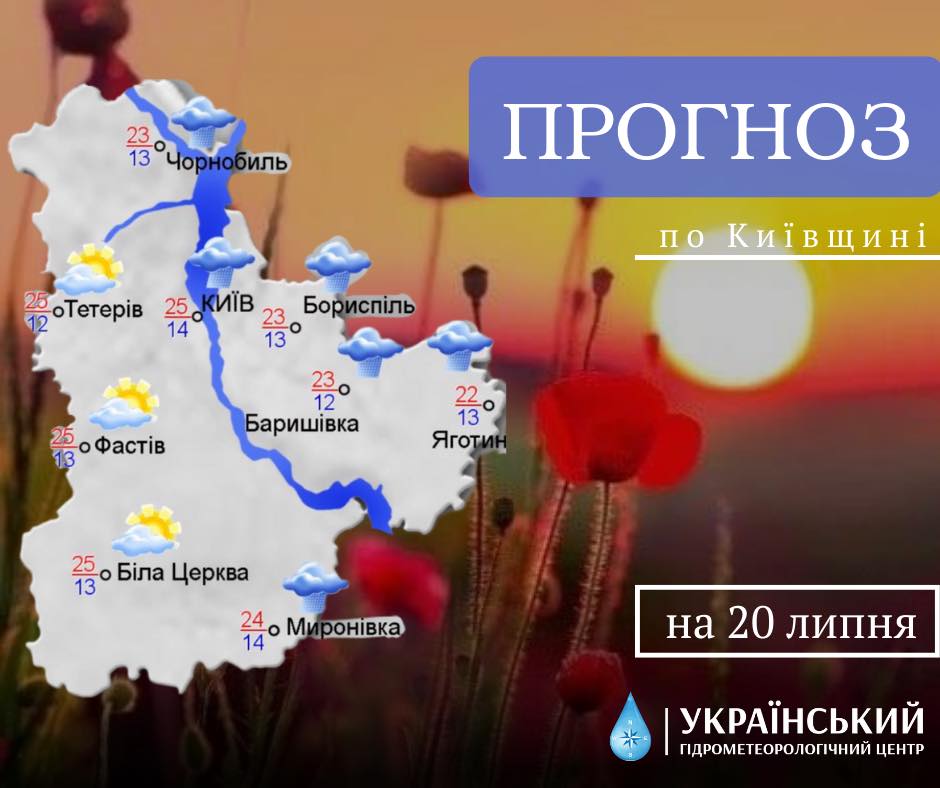 В Киеве и области 20 июля ночью без осадков, а днем пройдут кратковременные дожди с грозами.