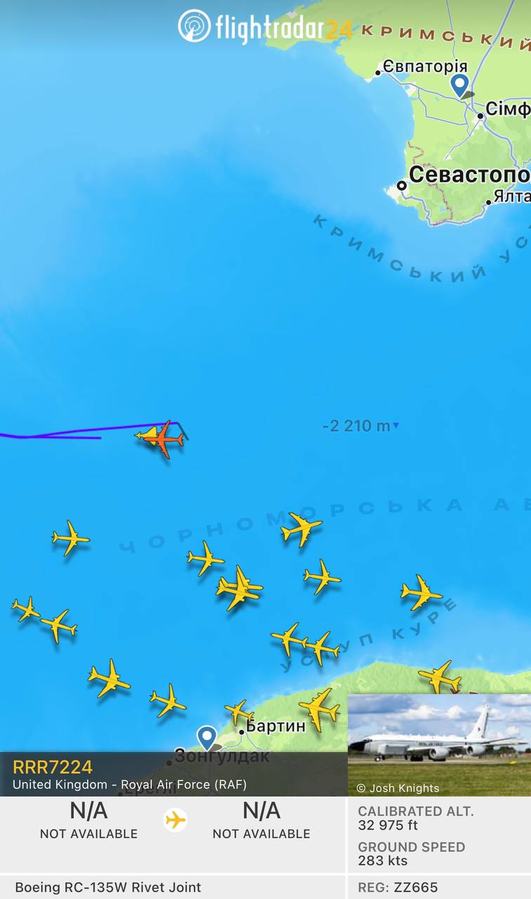 По информации пабликов, возле оккупированного полуострова летает британский разведчик и два истребителя.