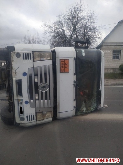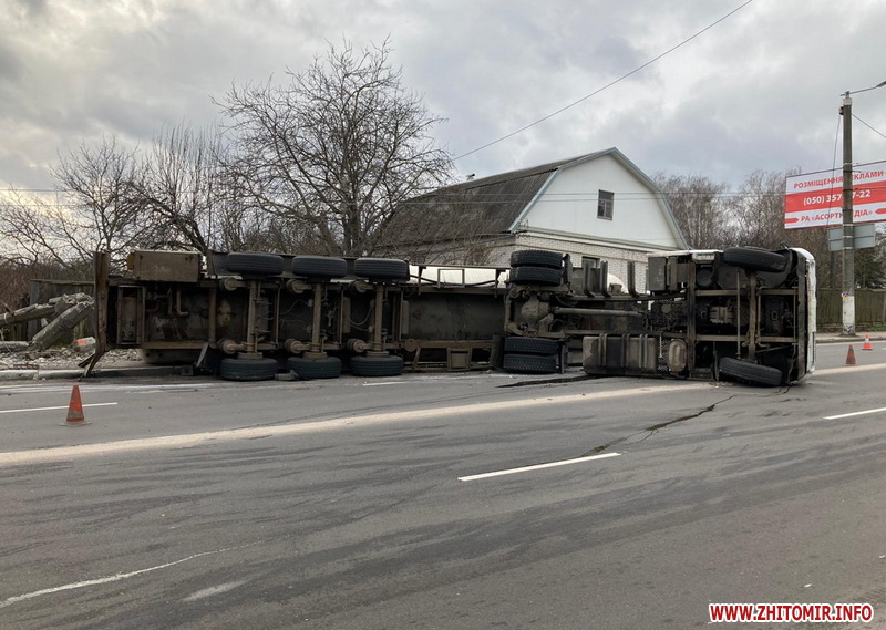 В субботу, 26 декабря, в Житомире водитель автоцистерны, перевозившей газ пропан-бутан, совершил наезд на троллейбусную электроопору и перевернулся посреди улицы. Очевидцы сообщают об утечке газа, из-за которой из ближайших домов эвакуировали местных жителей.