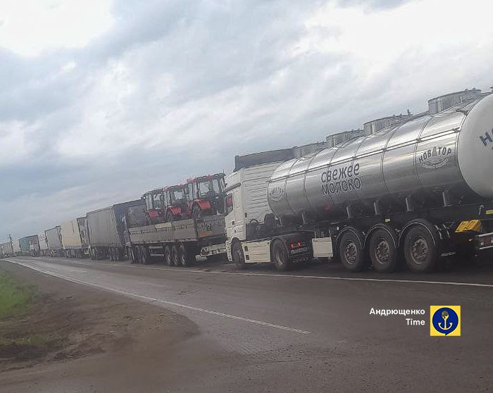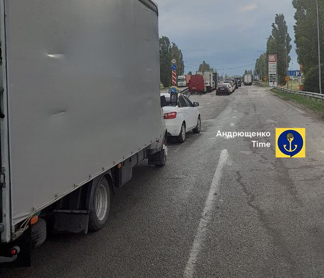 В сети распространяют фото и видео многокилометровой пробки на границе Украины с Россией в районе Новоазовска.