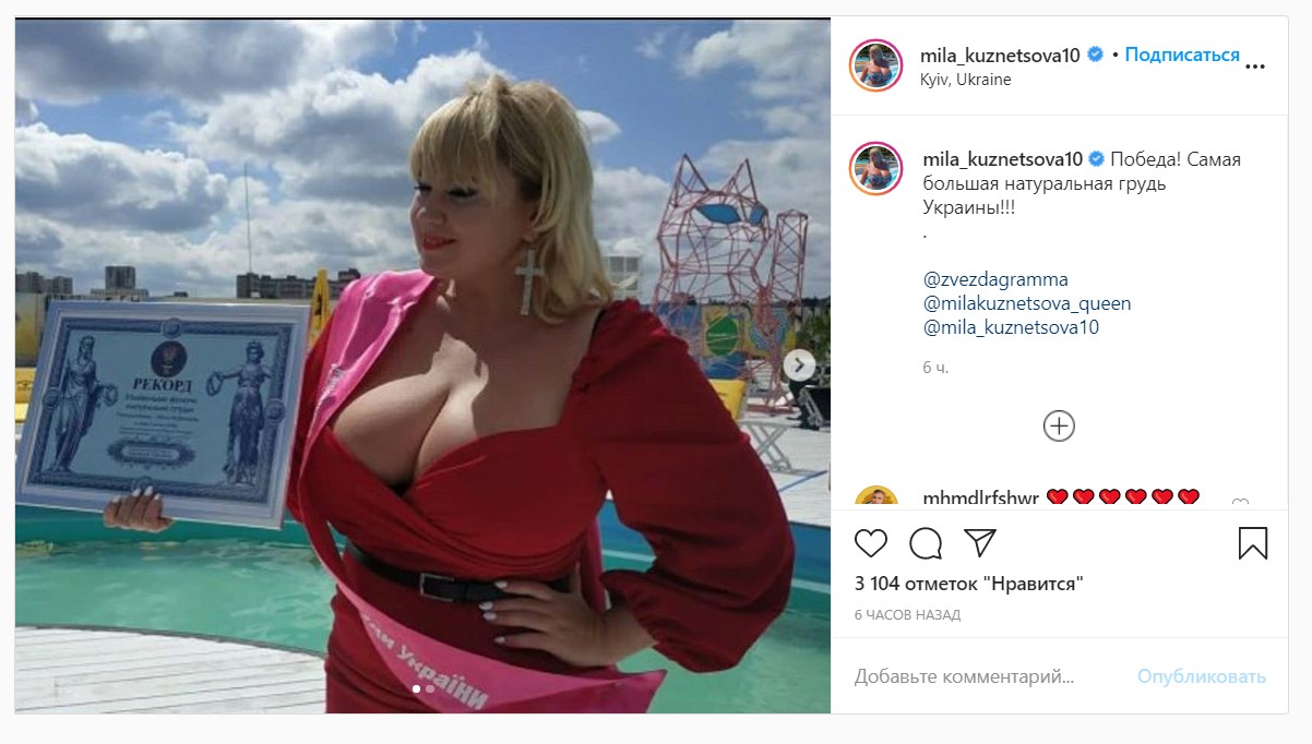 Украинская модель plus-size и блогер Мила Кузнецова стала рекордсменкой Украины в категории "Самая большая натуральная грудь".
