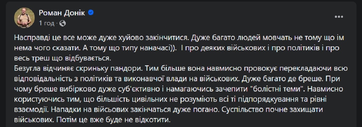 Известный волонтер Роман Доник указал на опасность перевода Безуглой ответственности на военных и обвинил ее в откровенной лжи.