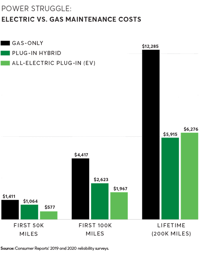 Плюсом электромобиля является экономия за счет меньших затрат на обслуживание и "заправку". Эксперты американской организации Consumer Reports (CR) подсчитали, что средняя экономия за период службы электрокара составляет от 6 до 10 тысяч долларов.