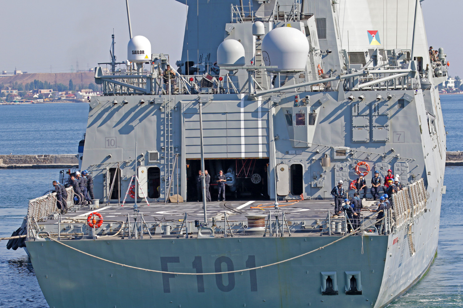 К 9 часам в порт начали прибывать основные ударные силы "Си Бриз". На 18, 19 и 20 причалах пришвартовались фрегаты - испанский (флагман SNMG2) F101 "Альваро де Базан", турецкий F243 "Йилдирим" и румынский F222 "Регина Мария".