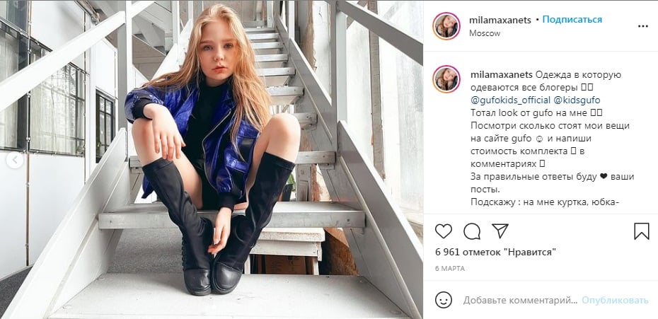 8-летняя модель Милана Маханец хвастается своими отношениями с 13-летним блогером Павлом Паем, а мать девочки активно раскручивает Instagram-карьеру своей дочери. Юрист назвала эту ситуацию посягательством на нормальное половое развитие детей, как тех, кто это смотрит, так и тех, кто изображает.