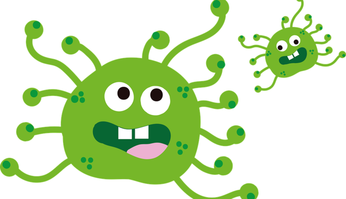 На одной из них новый, 2021 год, изображен в виде пушистого кролика, который ничего не подозревая скачет по лужайке, но на него уже охотится коронавирус в виде старушки с ножом.