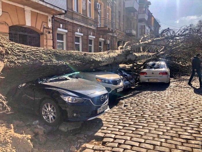 Бывший народный депутат Игорь Мосийчук опубликовал в своем Telegram-канале фото деревьев, упавших в Одессе прямо на автомобили.