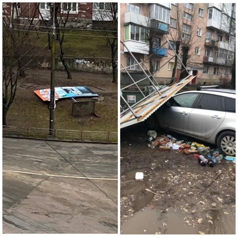 Кроме того, ветром снесло шиферную крышу на одной из школ, а также не устоял под натиском рекламный баннер, который упал прямо на находящийся рядом автомобиль.