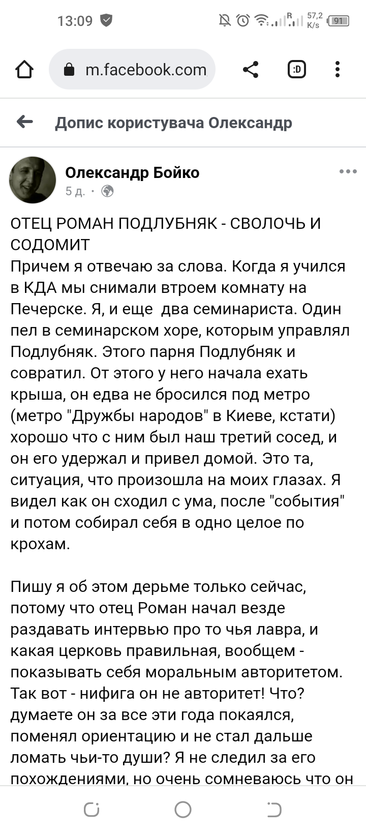 "Я уверен, что об этом и в лавре и в митрополии УПЦ все все прекрасно знали, но, как обычно - ничего не делали. Развели гадюшник, сволочи. Вот на таких как Подлубняк вы свой авторитет и растратили. Это ж ничего, вот если бы он в ПЦУ перешел, тогда да, это смертный грех, а так подумаешь, чьих то детей загубил, бывает... ",- написал журналист.