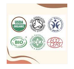 Экосертификаты, изображенные на товарах, говорят о том, что продукт отвечает многим экологическим нормам. ВIO – ингредиенты, должны быть отмечены звездочкой (*).