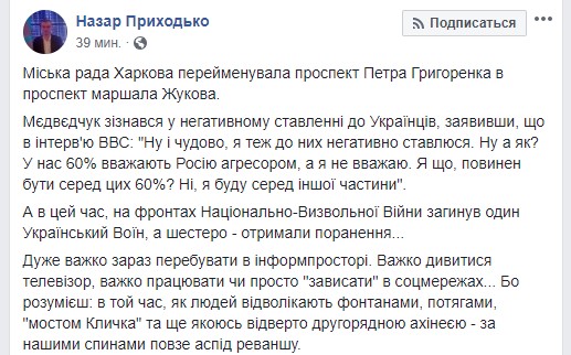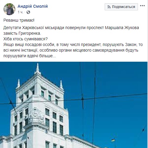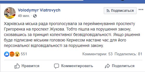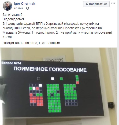В среду, 19 июня, Харьковский городской совет большинством голосов принял решение о переименовании проспекта Петра Григоренко в проспект коммунистического лидера маршала Жукова.
