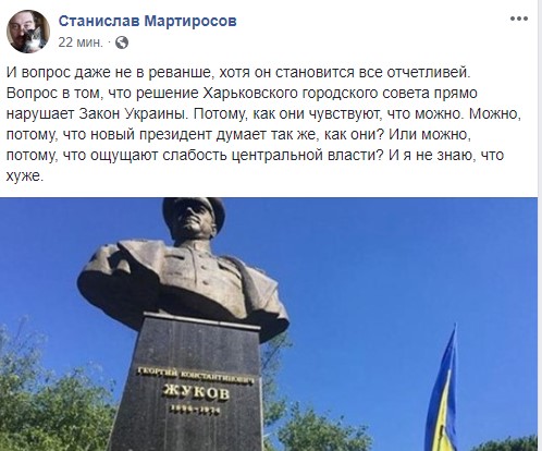 "Мы возвращаем историческое название проспекту маршала Жукова. Мы рассматриваем его исключительно как военачальника, который освобождал Украины, Харьков и Европу от фашистско-немецких захватчиков", - заявил мэр.
