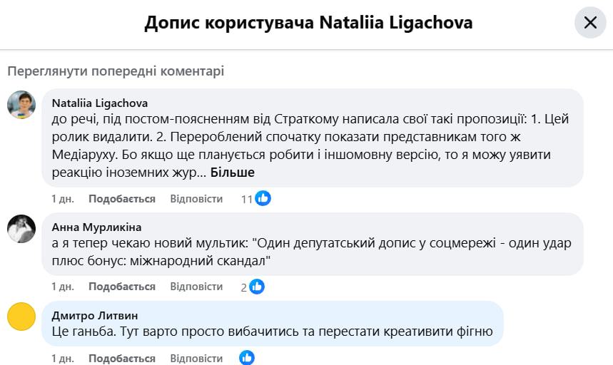 Литвин оставил комментарий в посту журналистки Наталии Лигачевой в соцсети Facebook.