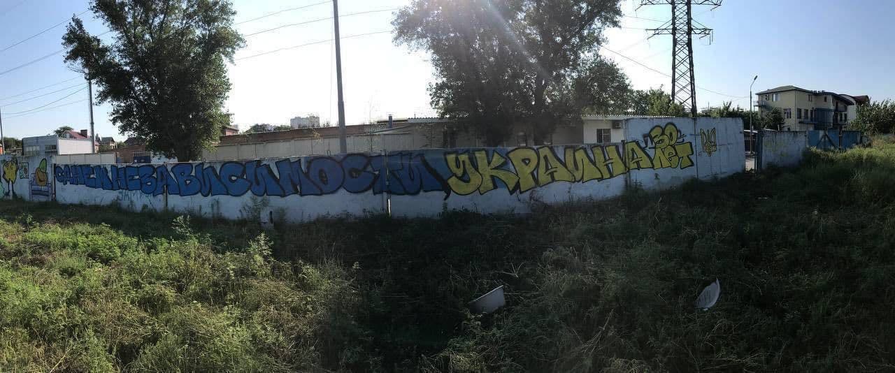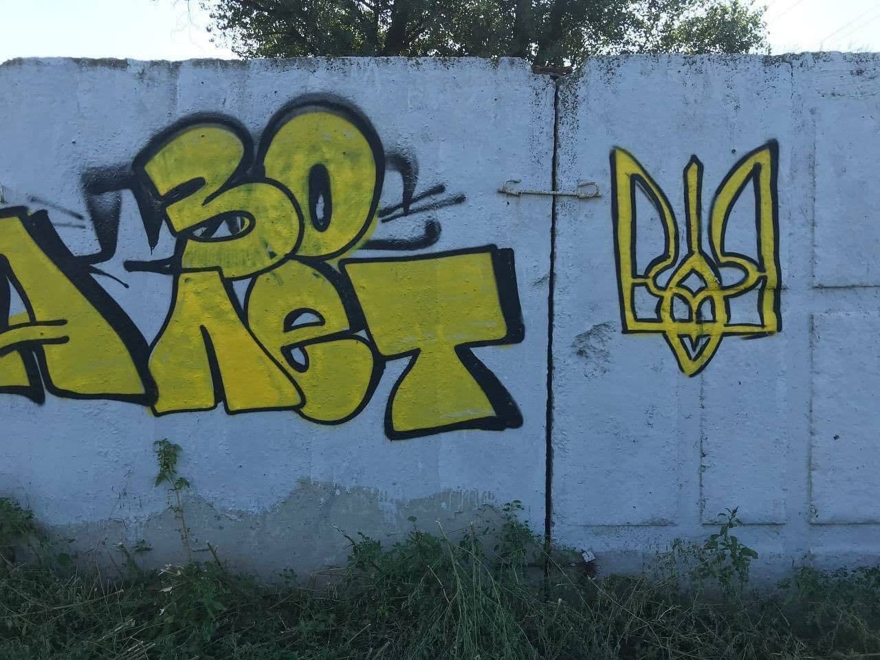 Кроме того, в центре Москвы было сделано граффити с поздравлениями к 30-летию украинской независимости.