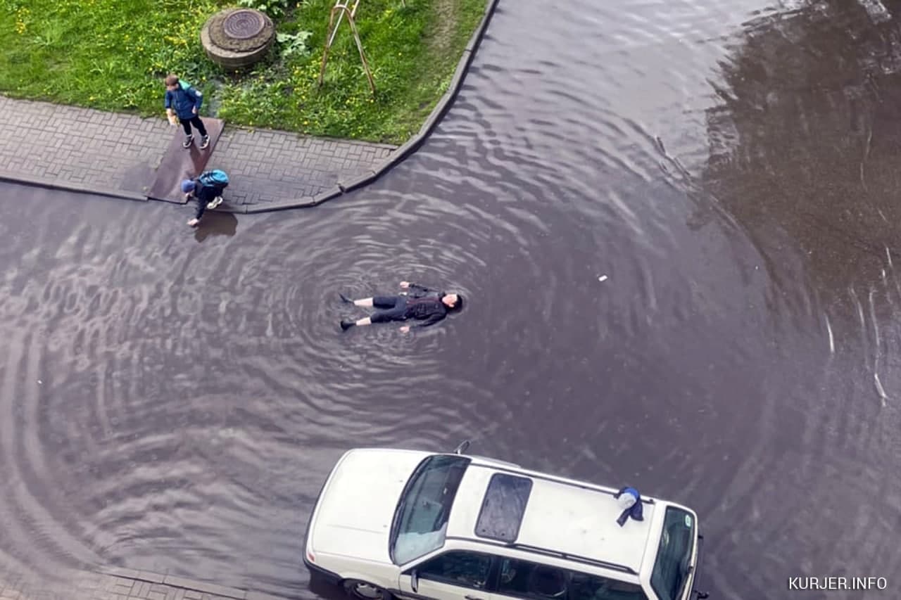 В Беларуси, в городе Слуцк Минской области прошли дожди. Залило воды во дворах по колено. Чем и воспользовался мальчик, который точно понял фразу "Живи моментом".