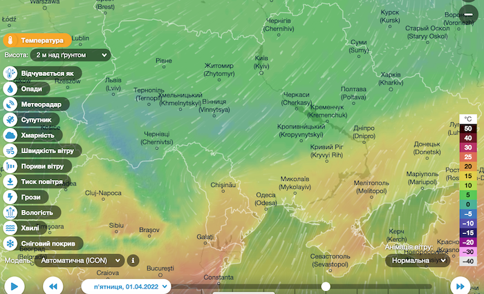 О прогнозе погоды на 1 апреля сообщает метеорологическая компания Ventusky.