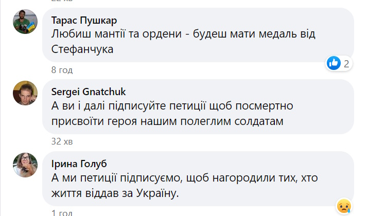 Журналист Марина Данилюк-Ярмолаева опубликовала пост на эту тему, под которым пользователи не скрывали своего возмущения решением Руслана Стефанчука.